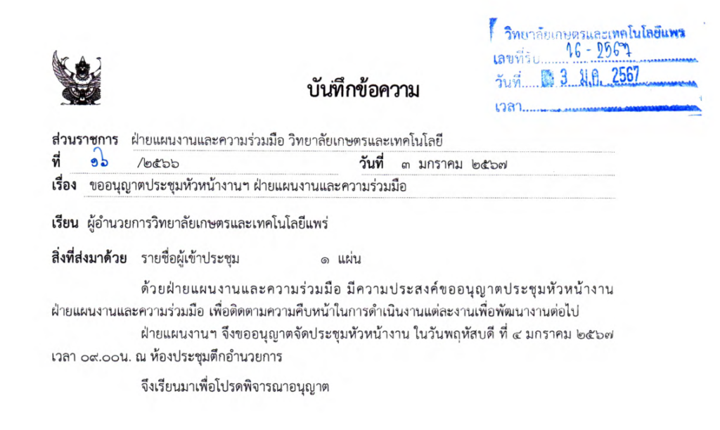 ประชุมฝ่ายแผนงานและความร่วมมือ
